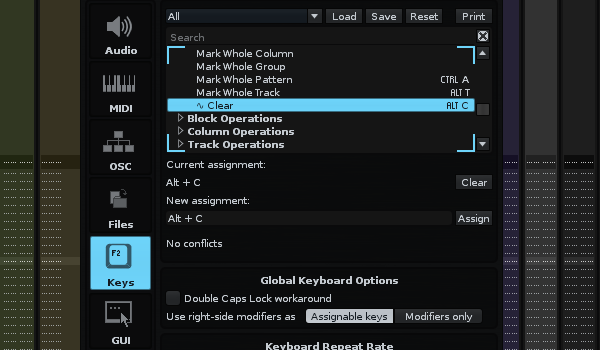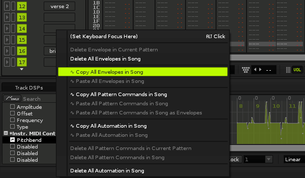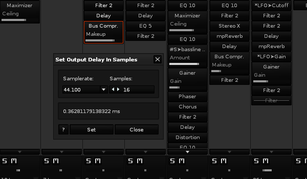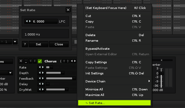 Set the Renoise internal Chorus, Flanger and Phaser effect rates in lines per cycle and the LFO frequency in Hz.
