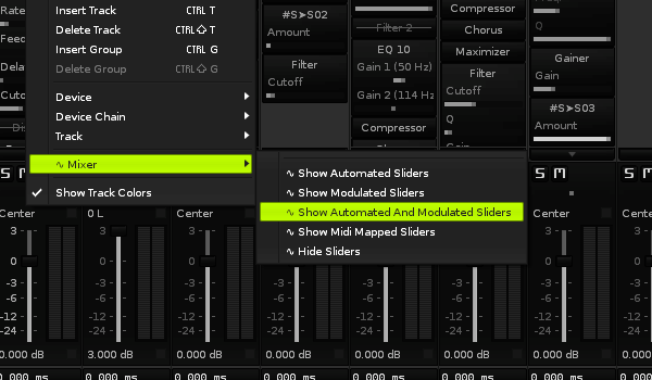 Display automated, modulated and midi mapped sliders in the mixer view for all tracks or only the currently selected one.