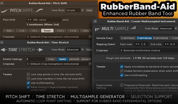 RubberBand-Aid: Time Stretch, Pitch Correction, and Multisample Builder