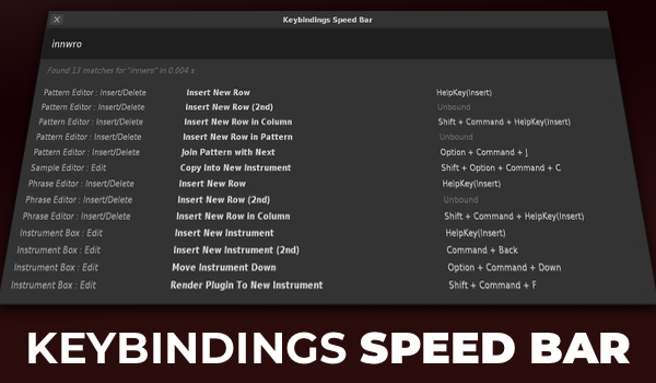 Speed bar for quickly searching keybindings using fuzzy matching.